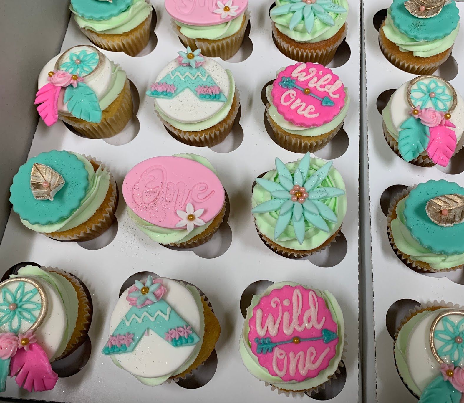 Cupcakes are topped with buttercream. Add a fondant topper for additional design.